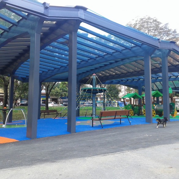 Estructura y cubierta de zona de juegos en Parque Los Hermanos. Barakaldo